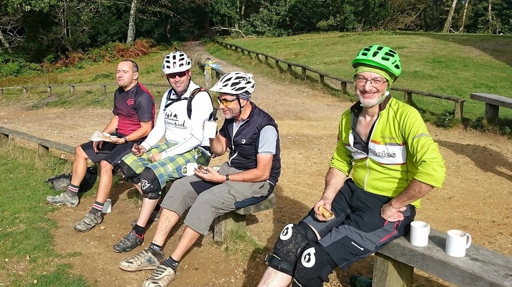 Next up Dave W led us through the Leith woods bomb holes to Superflow – a perfectly named trail snaking down the ridge north of Leith. Hopefully we will be back on that one soon. Finishing at Broadmore Bottom we crossed through Whiteberry Gate and up the lovely climb through Dukes Warren to the start of Summer Lightning. SL was a blast back to Westcott after which Dandy vetoed McPhearsons, so we took High Med and Ricin Beans to head back towards Polesden and Bocketts.